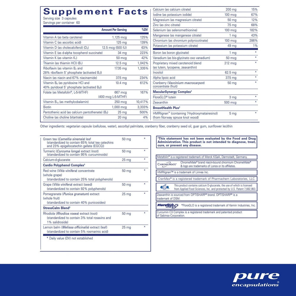 Women’s Nutrients 40+ is a multivitamin and mineral complex for women over 40 designed to support breast cell health, eye integrity, urinary tract health as well as emotional health. Women's Nutrients also helps maintain healthy blood vessel function for optimal cardiovascular health.