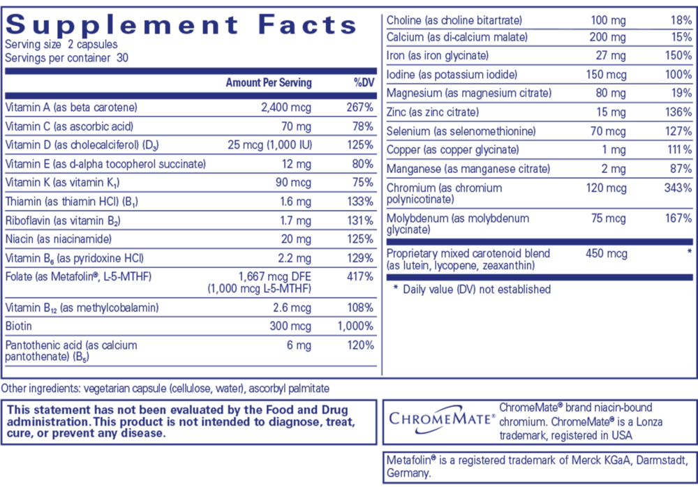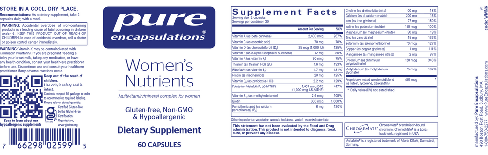 Women's Nutrients provides vitamins and minerals needed to support the needs of women of childbearing age, including women who are pregnant, may become pregnant or are lactating.