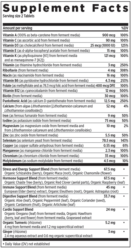 Complete nutrients for women, expertly formulated with whole-food fermented vitamins, minerals & herbs your body can recognize. 2 nutrient-packed tablets daily.