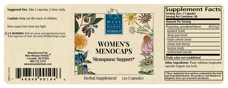 The female glandular system is a communication system not altogether unlike the nervous system. Through a release of chemicals and hormones, our bodies are able to maintain a steady internal balance and health. As a woman transitions through the menopausal years, these vital hormones and chemicals can become out of balance causing the transition of life to be uncomfortable. Wise Woman Herbals® Women's Menocaps are specifically designed to support healthy and normal female glandular system function and promote mood balance and relaxation.