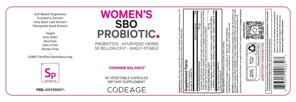 Codeage Women's SBO Probiotic would help promote your digestive system and gut flora. It is an all-in-one premium probiotic + prebiotic supplement which features 18 specifically targeted strains of probiotics delivering 50 Billion CFUs. The blend is a complete natural probiotic for women featuring a comprehensive blend of Ayurvedic and botanical herbs. The formula includes red clover, sage and bitter fennel, and cranberries.