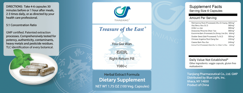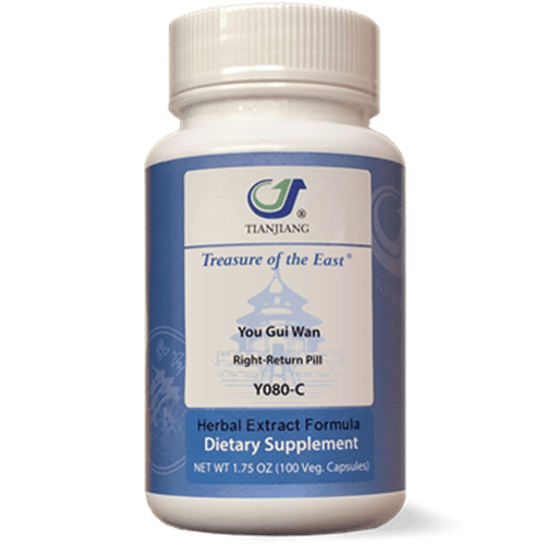 You Gui Wan is a classical formula that is designed for Kidney yang deficiency and ming men fire deficiency; deficiency Cold of spleen and stomach; kidney Qi and Yang deficiency. Marked by fatigue, exhaustion from long-term illness, low energy, aversion to cold, coolness of the extremities, aching and weakness of the lower back and knees, low sexual energy. Also look for a pale tongue, and deep, slow, weak pulse.