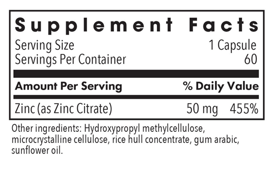 Zinc Citrate 50 mg provides a high-potency, bioavailable form of zinc to support immune function, reproductive health, and liver detoxification pathways.* Ideal for individuals with increased physiological demands, this form is better absorbed than zinc oxide.*