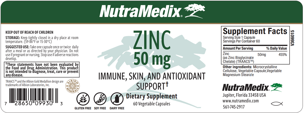 Zinc is essential for DNA synthesis, immune function, metabolism, and growthᶧ.