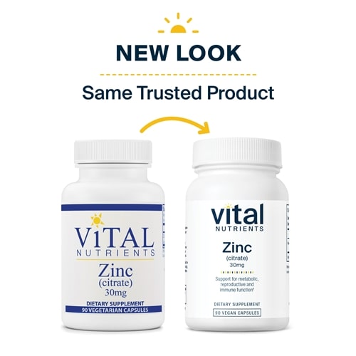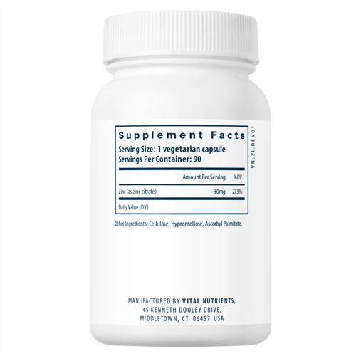 Zinc Citrate 30mg provides one of the best zinc supplements for easy absorption.* Zinc is an essential mineral utilized in many aspects of cellular metabolism.* Zinc Citrate may help maintain a healthy immune system and promote healthy neurological and reproductive function.* Zinc also plays an important role in protein synthesis, normal tissue formation and wound healing, making zinc supplements a popular choice for skin health.* Research suggests zinc supplements may reduce oxidative stress and support a healthy immune response during seasonal challenges.*
